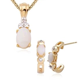 18k Yellow Gold Plated Sterling Silver Genuine Opal and Diamond Accent Pendant, 18" and Earring Set: Jewelry