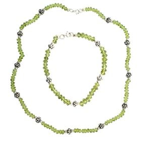 Sterling Silver Necklace and Bracelet Set Featuring Light Colored Glass Stones: Jewelry