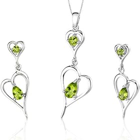 Heart Design 2.25 carats Pear Shape Sterling Silver Rhodium Finish Peridot Pendant Earrings Set: Peora: Jewelry