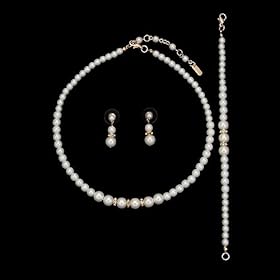Wedding Bridal cream Faux pearl Necklace Earrings Bracelet 3-PCS Set: Jewelry