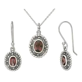 Sterling Silver Oval Amethyst Pendant and Earring Set, 18": Jewelry