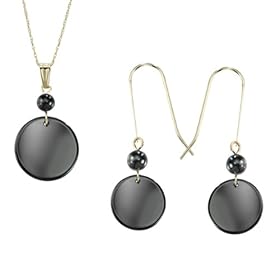 10k Yellow Gold Onyx Earrings and Pendant Set, 18": Jewelry