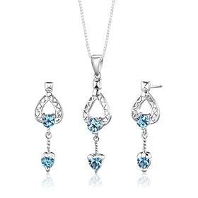 2.45 Ct Blue Topaz Heart Shape Pendant Earrings 925 Sterling Silver Set 18": Jewelry