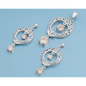 Nickel Free Sterling Silver Necklace & Earring Sets Hanging Champagne CZ Set Pendant Length: 49.8mm Width: 16.7mm Earring Length: 8.65mmwidth: 12.1mm Adjustable Chain Included: Jewelry