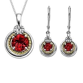 Sterling Silver Rhodium Finish Trillion Cut Ruby Pendant Earrings and 18 inch Necklace Set: Peora: Jewelry