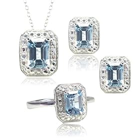 Sterling Silver Pear Blue Topaz Ring, Pendant Necklace and Earrings Diamond Box Set: Jewelry