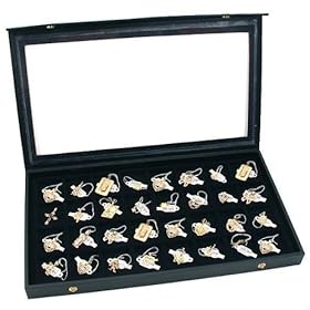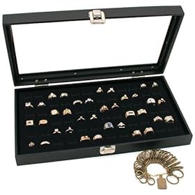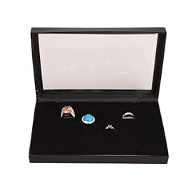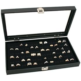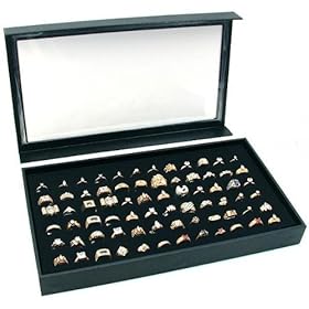 Black Glass Top Jewelry Display 72 Ring Case Box Bonus: Home & Kitchen