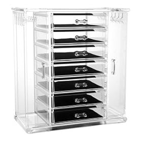 Acrylic Deluxe Jewel Box - 7-Drawer Jewelry Chest With Necklace Keeper (Clear) (11 7/8"H x 10 3/4"W x 5 7/8"D): Home & Kitchen