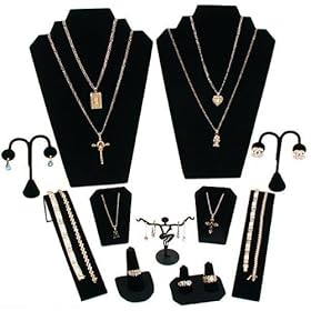 11 Pc Set Black Velvet Jewelry Displays Busts Bonus New: Home & Kitchen