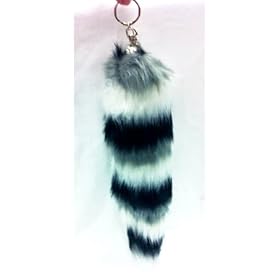 Grey/White/Black Stripes Foxtail 12" Keychain with Clip: Automotive