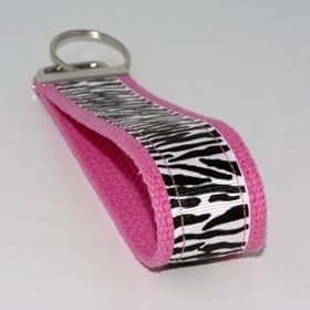 White Zebra Print 5" - Pink - Fabric Keychain Key Fob Ring Wristlet: Automotive