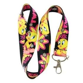 New Tweety Bird Black with Pink Flower Lanyard Keychain Holder: Automotive