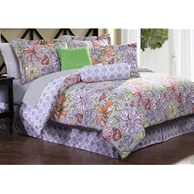 Best Quality Lavender Blossom Vine Stripe Full Comforter Set By Pem America: Home & Kitchen