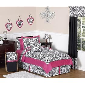 Hot Pink, Black and White Isabella Childrens and Teen Bedding 3 pc Full / Queen Set by JoJO Designs: Home & Kitchen