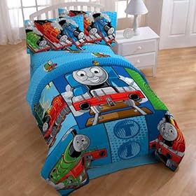 Thomas Train Railroad 4pc Twin Comforter Sheets Bed Set: Home & Kitchen