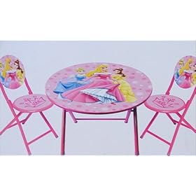 Disney Princess Girls Table and Chairs Pink 3-pc Folding Set: Home & Kitchen