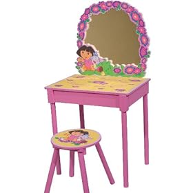 Dora the Explorer Girls Pink Vanity and Stool Set: Home & Kitchen