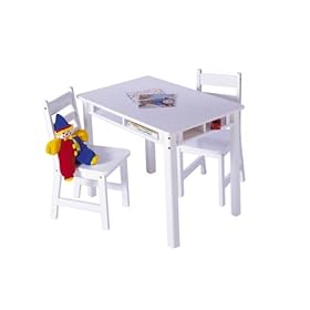 Lipper International 534W Child"s Rectangular Table and 2-Chair Set, White: Home & Kitchen