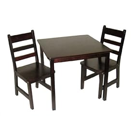 Lipper International Child"s Square Table And Two Chairs - Espresso: Home & Kitchen