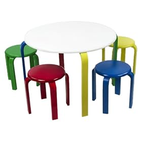 Lipper International 559W Child"s Round White Table and 4 Multicolored Stools Set: Home & Kitchen