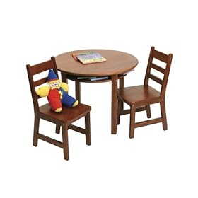 Lipper International Child"s Round Table and Set of 2 Chairs, Pecan: Home & Kitchen