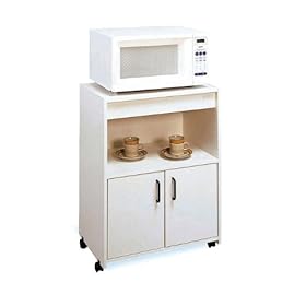 White Finish Wood Microwave Stand Kitchen Serving Cart w/Wheels: Furniture & Decor