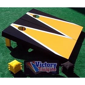 Yellow & Black Custom Painted Cornhole Bag Toss Game Set: Sports & Outdoors