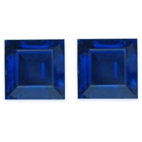 3.75 Carat Loose Blue Sapphires Square Cut Pair: Jewelry