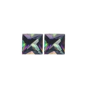 3.78 Cts of AAA 7 mm Princess Matching Loose Mystic Green Topaz ( 2 pcs set ) Gemstones: Jewelry