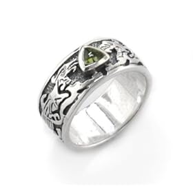 Genuine Green Moldavite Meteor Gemstone Celtic Knot Dragon Sterling Silver Ring Size 15(Sizes 4,5,6,7,8,9,10,11,12,13,14,15): Jewelry