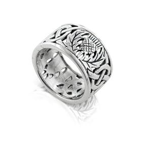 Scottish Thistle and Celtic Knot Wedding Band 11mm Wide Sterling Silver Ring Size 12(Sizes 3,4,5,6,7,8,9,10,11,12,13,14,15): Jewelry