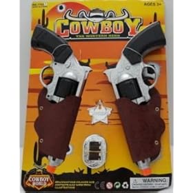 Western Cowboy Gun Pistols And Holster Set With Sheriff Badge Battery Operated with Shooting Sounds: Toys & Games