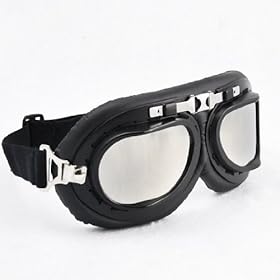 Red Baron Motorcycle / Aviator Goggles Black Padded Frame w/ Driving Mirrored Lens: Automotive