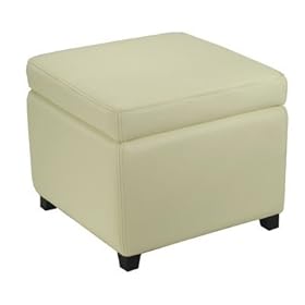 Bobkona Bonded Leather Match Storage Ottoman, Cream: Home & Kitchen