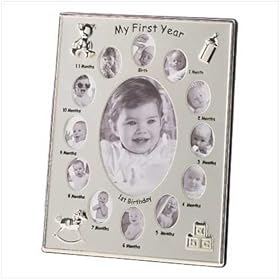 "My First Year" Rectangular Photos - Twelve 1½"×2" Birth Thru 11 Months & One - 3½×5 Photo Frame with an Engraveable Surface: Home & Kitchen