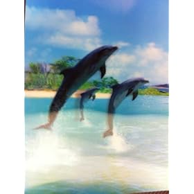 3D Effect Print Paint Plastic Picture - Dolphins (size 13" x 9.5"): Home & Kitchen