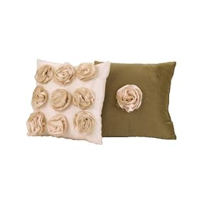 Brentwood Rosette 18-by-18-inch Knife Edge Decorative Pillow, Natural: Home & Kitchen