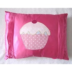 PINK GIRLS CUPCAKE SATIN TAFFETA EMBROIDERED FILLED CUSHION 30X40CM: Everything Else