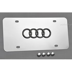 Audi 3D Logo on Mirrored Stainless Steel License Plate: Automotive