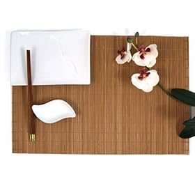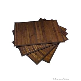 Set of 4 Chocolate Brown Slat Bamboo Placemats 12x18: Home & Kitchen