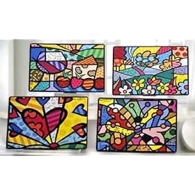 New Romero Britto Set of 4 Placemats Wood Paper & Cork: Home & Kitchen