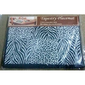 Set of 4 Tapestry Placemats Leopard Zebra (Black/White): Everything Else