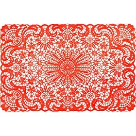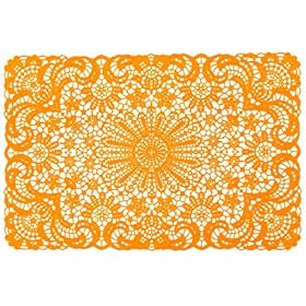 Present Time Set of (4) Vinyl Lace Design Kitchen Table Placemats 18"x12" - Orange: Home & Kitchen