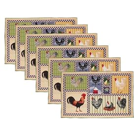 Park B. Smith Roosters and Chickens 6-Piece Tapestry Placemat Set, 12-1/2 by 19-Inch: Home & Kitchen