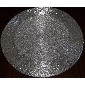 Silver Black Beaded Charger Placemat - Set of 2 - 14" Square - Modern Contemporary - Silver Black Design: Kitchen & Dining