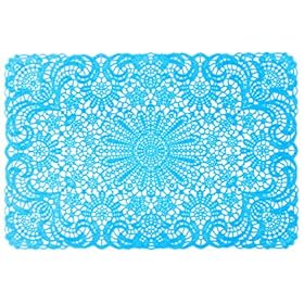 Present Time Set of (4) Vinyl Lace Pattern Kitchen Table Placemats 18"x12" - Light Blue: Home & Kitchen