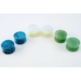 Pair of 4g (6 Total) 5mm Turquoise, Opalite & Jade Semi Precious Stone Ear Plugs Gauges - Free Shipping USA: Jewelry