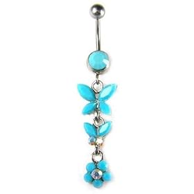 Stainless Steel Belly Ring with Sky Blue CZ - Butterfly: Jewelry
