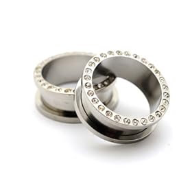 UV size 5/8" (16MM) Flesh Tunnel with Clear crystals - you get ONE PAIR - we use Sawovski crystals - bling bling!! - different sizes available - choose from the drop down menu: GlitZ JewelZ: Jewelry