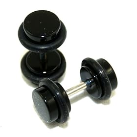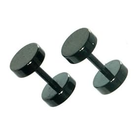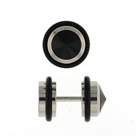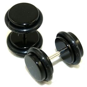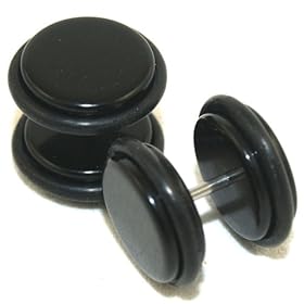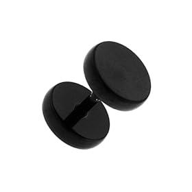 Stainless Steel Black Plain Fake Plug - 16g stud wire - 2g Fake Stud - Sold as a Pair: Jewelry
